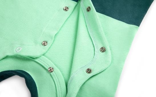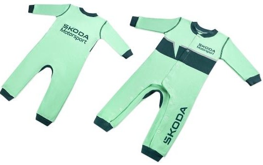 Grenouillère Škoda Motorsport taille 74 vert électrique avec détails vert foncé dont logo Škoda Motorsport.