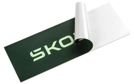 Autocollant Škoda vert émeraude de taille petite. Papier brillant avec fente au dos. Logo SKODA en vert émeraude.