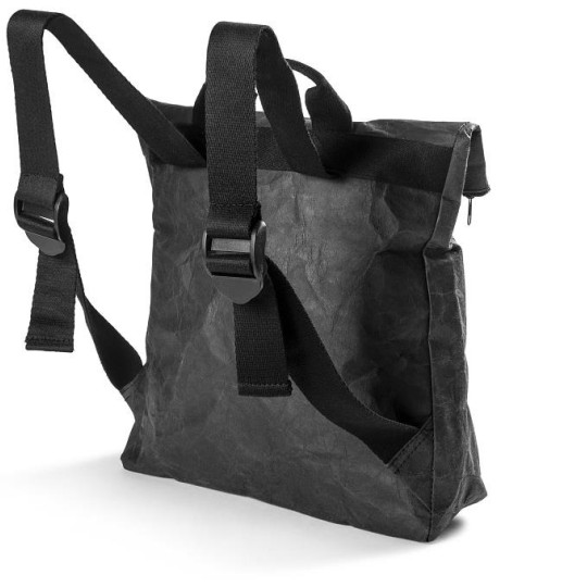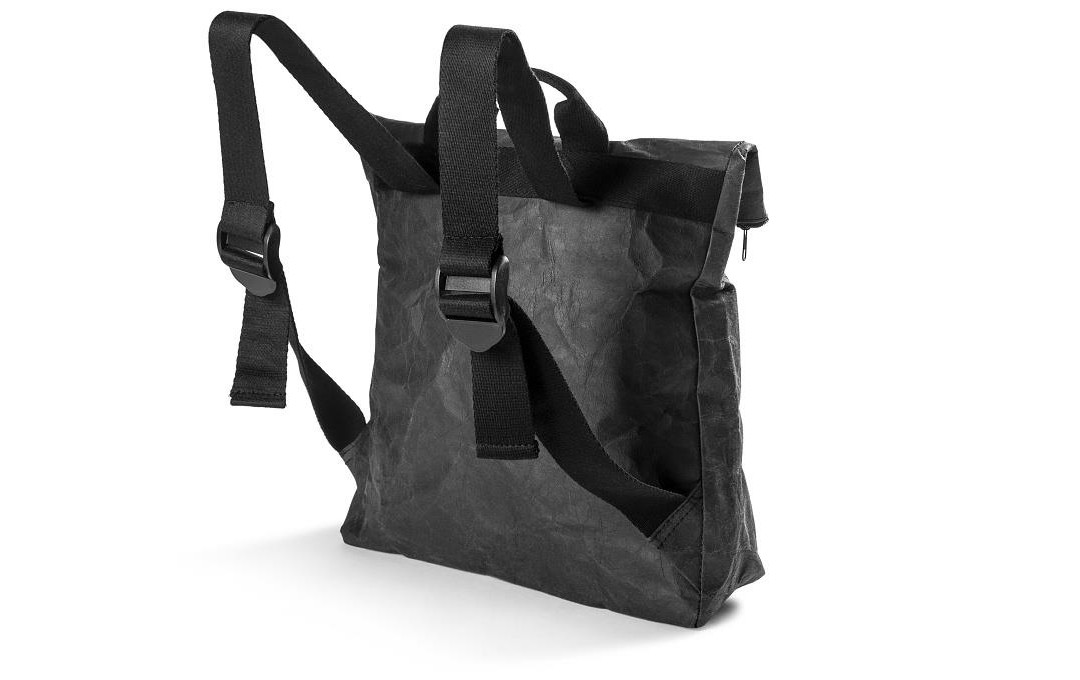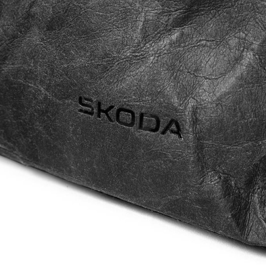 Sac à dos noir ECO. Le sac est cousu à la main et il est entièrement recyclable et compostable. Le sac fait à partir de papier de fibre de cellulose doux et durable. Le sac est facilement nettoyable à la main, lavable et résiste très bien à l’abrasion. Il possède un aspect froissé qui rappelle la texture du cuir. Le logo Škoda est présent sur le devant du sac. Le sac possède une petite poche intérieure de 23 x 15 cm. Les bretelles sont réglables.