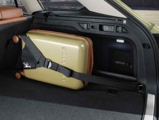 La sangle de fixation du coffre est un accessoire qui contribue au transport en toute sécurité de bagages plus volumineux. Elle permet de fixer facilement, par exemple, des valises pour éviter qu'elles ne se déplacent dans le compartiment à bagages. La sangle peut être facilement ajustée à l'aide de boucles à la forme et aux dimensions de l'objet fixé.