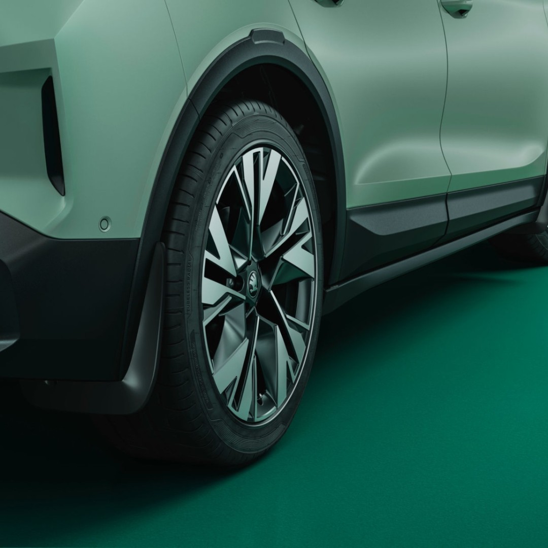 Les bavettes arrière protègent efficacement les côtés de votre Škoda Elroq contre la saleté et les éclats. Elles sont conçues pour s'adapter parfaitement derrière les roues avant sans altérer l'aérodynamisme du véhicule.