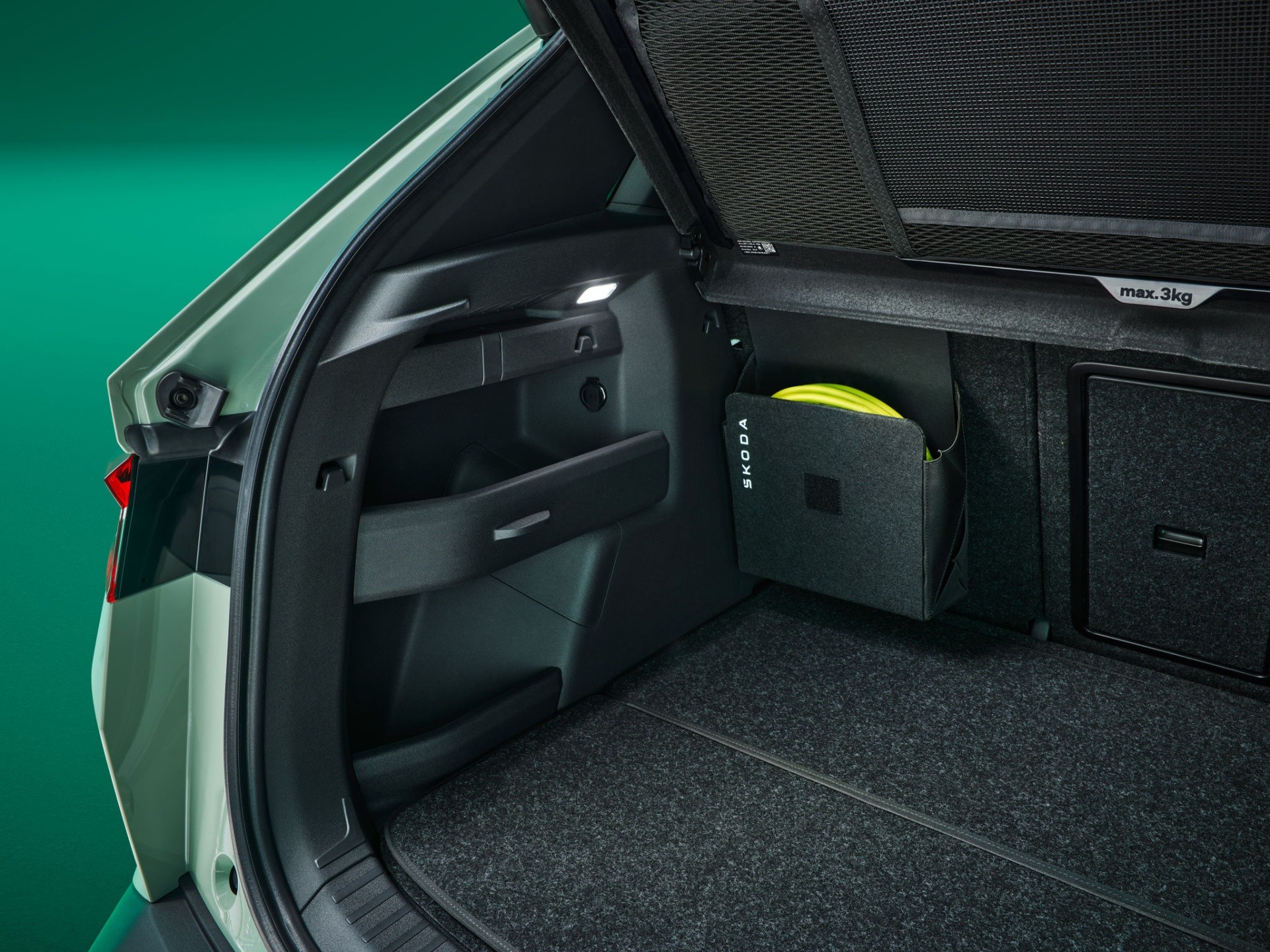 La poche de coffre est une nouveauté de la gamme Škoda Genuine Accessories. Principalement conçue pour le rangement des câbles de recharge, elle peut également être utiliser pour d’autres objets de taille, de forme et de poids adaptés.