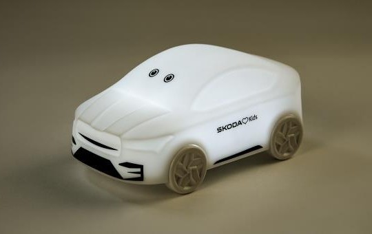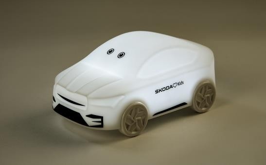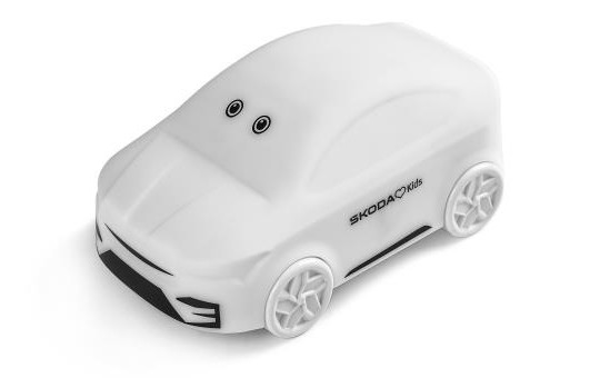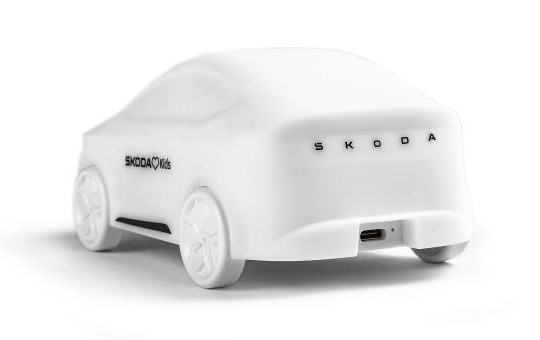 Lampe pour enfants en forme de voiture Enyaq qui change de couleur et qui peut servir de veilleuse. La couleur de la lampe peut être changée : la lampe possède 8 couleurs différentes. Appuyez sur la lampe pour changer les couleurs. Les explications sont décrites dans le manuel d’instructions papier ci-joint.
