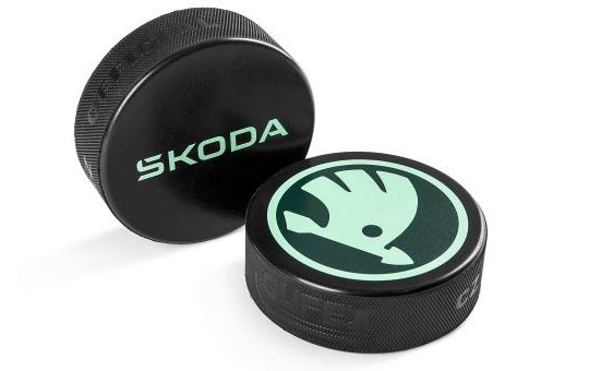 Palet de hockey en caoutchouc de haute qualité avec logo Škoda imprimé. Fabriqué en République tchèque.