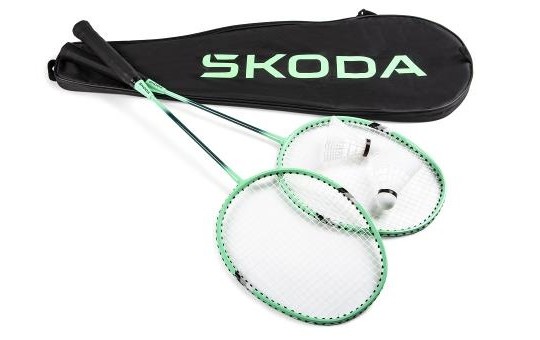 Le set de badminton comprend deux raquettes de couleur vert électrique et vert émeraude et deux volants de badminton blancs dans un tube. L’ensemble est dans un étui pratique avec le logo ŠKODA en vert électrique. Sangle réglable sur l’étui pour un transport facile.