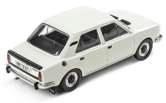 Modèle miniature avec une échelle 1:43 de la Škoda 120L 1982 en blanc.