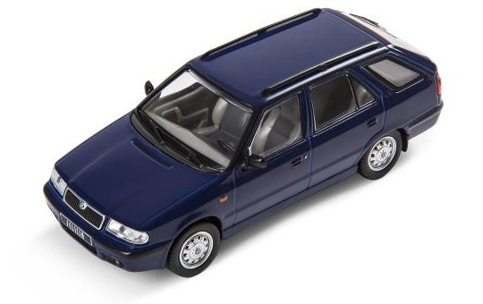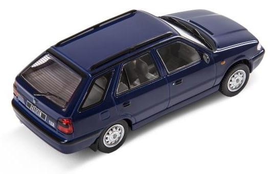 Modèle miniature avec une échelle 1:43 de la Škoda Felicia FL Combi 1998 en bleu.