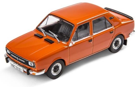 Modèle miniature avec une échelle 1:43 de la Škoda 120L 1982 en orange.