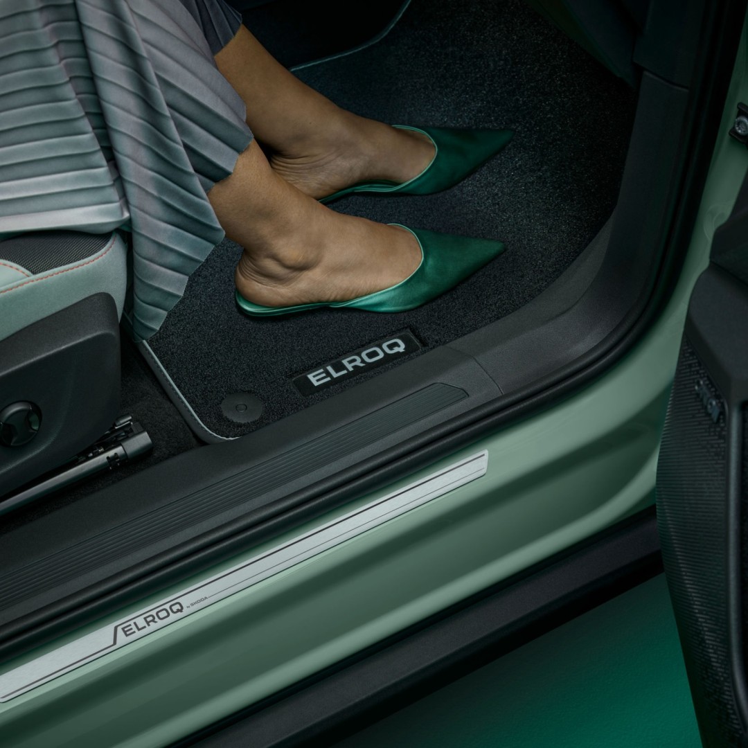 Les seuils de porte décoratifs en alluminium sont un accessoire élégant pour le SUV électrique Škoda Elroq.