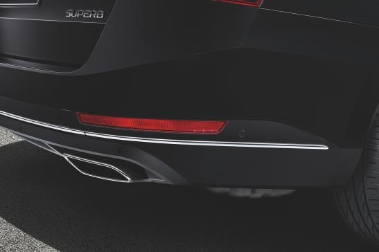 Avec la ŠKODA Superb, les frontières entre design discret et fonctionnalité pratique s'estompent. Les baguettes chromées des pare-chocs avant et arrière confèrent au véhicule un air de luxe distinct, ce qui lui confère un look à la fois frais et attrayant. La baguette chromée du pare-chocs arrière est fabriquée en ABS durable, qui conserve sa forme et sa couleur au fil du temps. Toutes les parties de la baguette sont façonnées de manière à suivre parfaitement le contour du bord du pare-chocs arrière, sur lequel elles sont collées. La bande a passé les tests de qualité de ŠKODA. Même s'il semble facile de les coller, nous recommandons de confier cette tâche à un partenaire de service agréé ŠKODA AUTO. Une fois que le temps spécifié s'est écoulé après le collage de la bande pour le pare-chocs arrière, le véhicule peut être lavé dans une station de lavage.