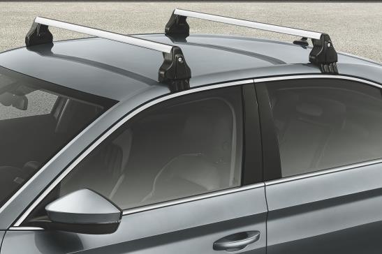 Les barres de toit de base sont un accessoire pratique de la ŠKODA SUPERB. Grâce à leur qualité éprouvée, à leur sécurité et à leur confort d'utilisation, les barres de toit de base méritent d'être considérées comme la meilleure solution pour le transport d'objets plus grands au cas où leurs dimensions dépasseraient le volume du coffre. C'est la seule façon d'assurer le confort des passagers dans une voiture pleine. La galerie de toit de base se monte facilement dans l'espace entre la portière de la voiture et les flancs. Il est verrouillable et protège ainsi l'équipement contre le vol. Grâce à l'utilisation de ce que l'on appelle les rainures en T, il est possible de monter d'autres systèmes de transport pratiques et verrouillables sur les barres de toit, comme des porte-vélos ou des porte-skis, des coffres à skis ou à snowboard, un panier à bagages, etc. essais de résistance aux chocs. Sa qualité est confirmée par la réussite du City Crash Test, qui exige que la galerie de toit chargée de 90 à 120 kg reste attachée à la carrosserie pendant 50 millisecondes de surcharge de 12 G. Pour réussir le City Crash Test, il est également essentiel qu'aucun des objets transportés ne soit séparé. Cela garantit une sécurité maximale des passagers à l'intérieur de la voiture, ainsi que des autres usagers de la route devant et derrière la voiture. La limite de charge des barres de toit est définie par la charge maximale autorisée du toit (y compris la galerie) indiquée sur le certificat d'immatriculation de chaque véhicule.