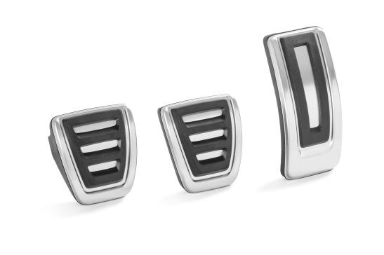 Faisant partie de la gamme d'accessoires d'origine ŠKODA, les couvre-pédales en acier inoxydable rehaussent l'apparence de l'intérieur de votre voiture grâce à leur design sportif et élégant.