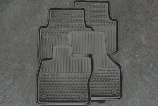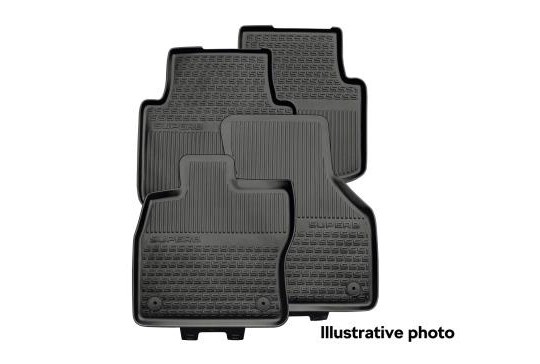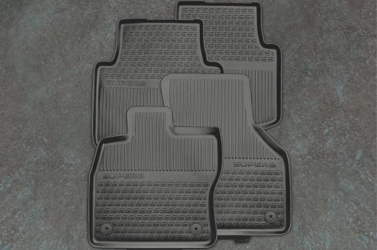 Les tapis de sol tous temps à bords relevés sont adaptés aux dimensions exactes du plancher avant de la Škoda Superb. Ils remplissent parfaitement l'espace sous les pieds et, grâce aux protubérances qui s'enclenchent sur les montants du plancher, restent fermement en place. Ils ont une surface antidérapante, recueillent la saleté et l'humidité des chaussures et sont très faciles à nettoyer. Ils s'enlèvent facilement à tout moment et se lavent simplement avec des détergents courants.