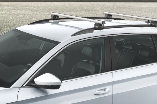 Les barres de toit transversales constituent un complément pratique aux véhicules ŠKODA SUPERB Combi équipés de barres de toit. En raison de leur qualité, de leur fiabilité éprouvée et de leur facilité d'utilisation, ils sont à juste titre considérés comme la solution idéale pour le transport de gros objets. Surtout lorsque ces objets sont trop volumineux pour le coffre à bagages. La fixation des barres de toit transversales aux barres de toit est très simple : il suffit d'abaisser le levier excentrique et le tour est joué. Les barres de toit transversales sont verrouillables et dissuadent ainsi les voleurs. La fente en T permet de monter d'autres systèmes de transport pratiques, fiables et verrouillables, tels que des porte-vélos, des porte-skis, des coffres à skis et à snowboard, des porte-bagages, etc., sur les barres de toit transversales. La galerie transversale de toit est soumise à